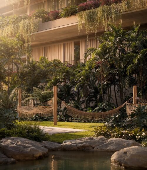 Projeto paisagístico com jardins privativos e áreas comuns arborizadas, conectando você à natureza.